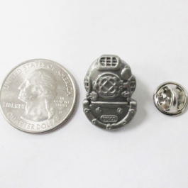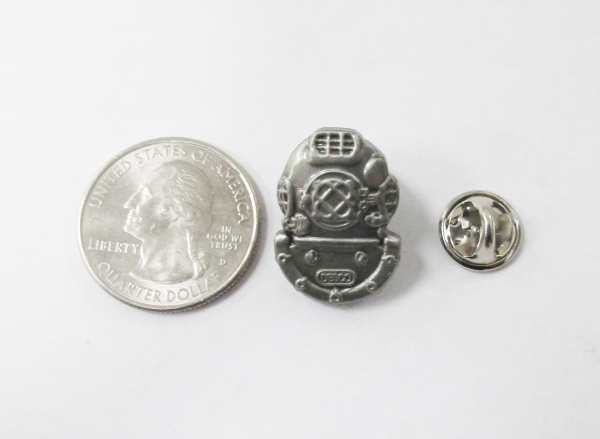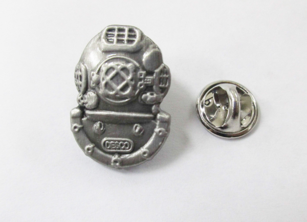 This hat pin is the same logo as is featured on the DESCO Zippo lighters. It is made of Nickel. Size is 7/8" tall x 3/4" wide. The pin has a military/butterfly clutch fastener.
